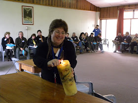 Cecilia Guzmán, Presidenta Nacional procede a encender el cirio que nos acompañó durante esta Asamblea