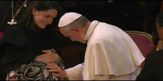 Ya antes de su llegada los músicos estaban tocando una canción. Cuando elPapa se acercó al escenario la orquesta interpretó, en clave clásica...